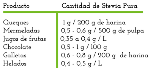 Algunas sugerencias sobre las cantidades a usar de stevia pura en repostería: